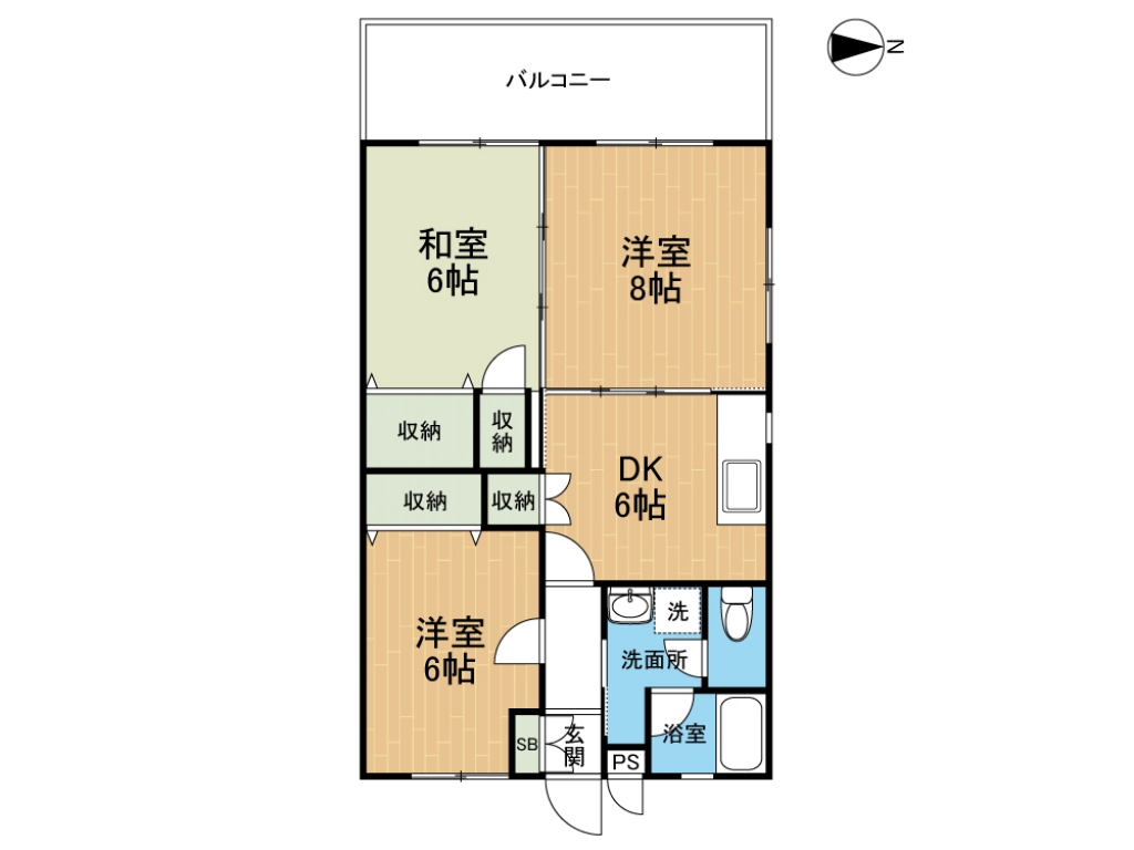 | 間取り | 3DK (DK6・洋6・洋8・和6) | 専有面積 | 56.2㎡ |