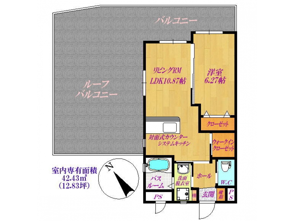 | 間取り | 1LDK (LDK10.9・洋6.3) | 専有面積 | 42.43㎡ |