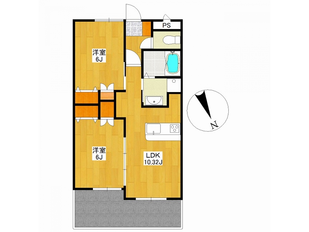 | 間取り | 2LDK (洋6・洋6・LDK10.3) | 専有面積 | 47.3㎡ |