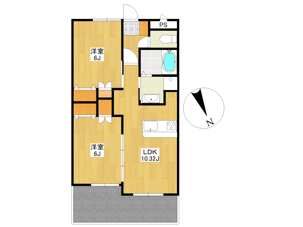 | 間取り | 2LDK (洋6・洋6・LDK10.3) | 専有面積 | 47.3㎡ |