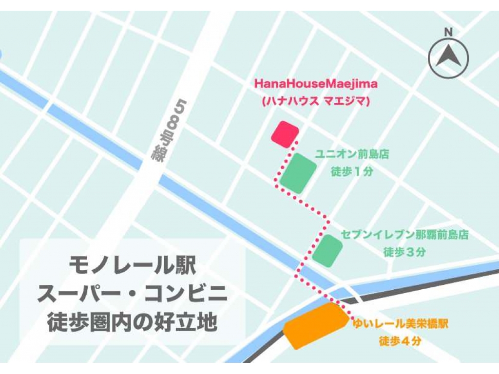 | 交通 | 美栄橋前バス停から徒歩で4分 美栄橋駅から徒歩で4分 | 校区 | 那覇小学校まで徒歩で5分 那覇中学校まで徒歩で8分 | ||||