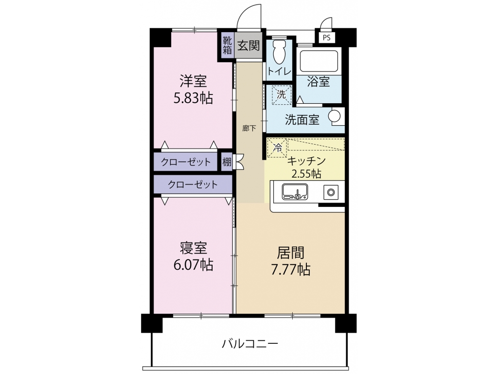 | 間取り | 2LDK (LDK10.3・洋6.7・洋5.8) | 専有面積 | 56.27㎡ |