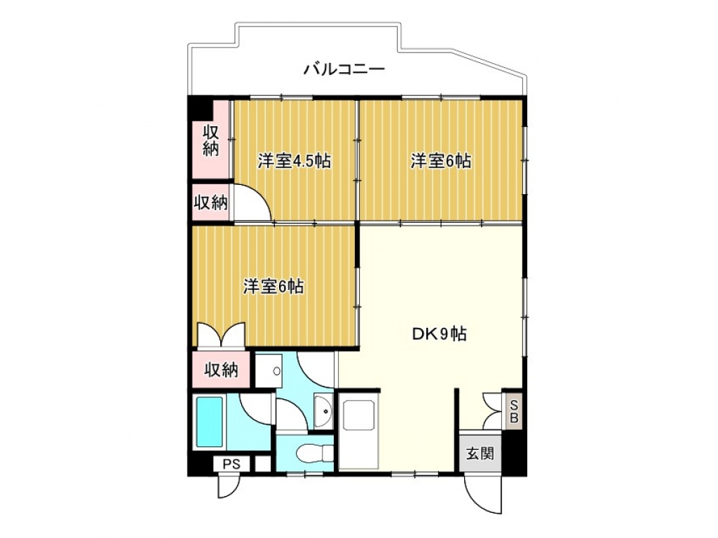 | 間取り | 3DK (洋6・洋6・洋4.5・DK9) | 専有面積 | 56.58㎡ |