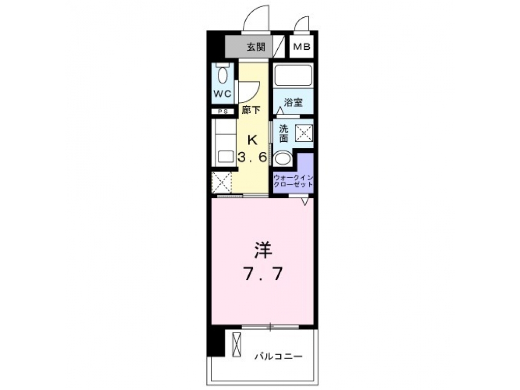 | 間取り | 1K (洋7.7・K3.6) | 専有面積 | 27.92㎡ |
